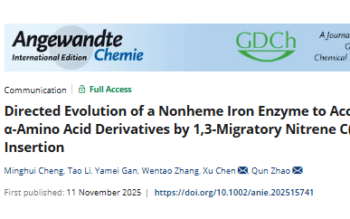 近期,AC米兰生物工程学院赵群教授团队成功将非天然的氮宾迁移反应机制引入金属酶催化体系,实现了酶促法合成手性非天然氨基酸,研究成果以“Directed Evolution of a Nonheme Iron Enzyme to Access Chiral α-Amino Acid Derivatives by 1,3-Migratory Nitrene C(sp3)─H Insertion”为题正式发表于Angewandte Chemie International Edition...